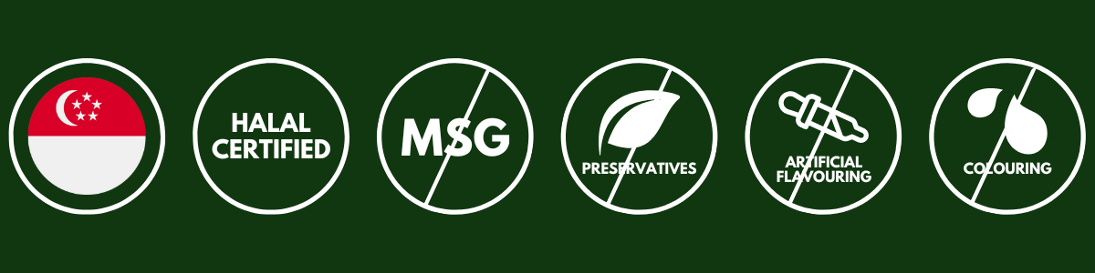 Made in Singapore and using 100% natural ingredients, with zero added MSG, preservatives, artificial flavouring and colouring.